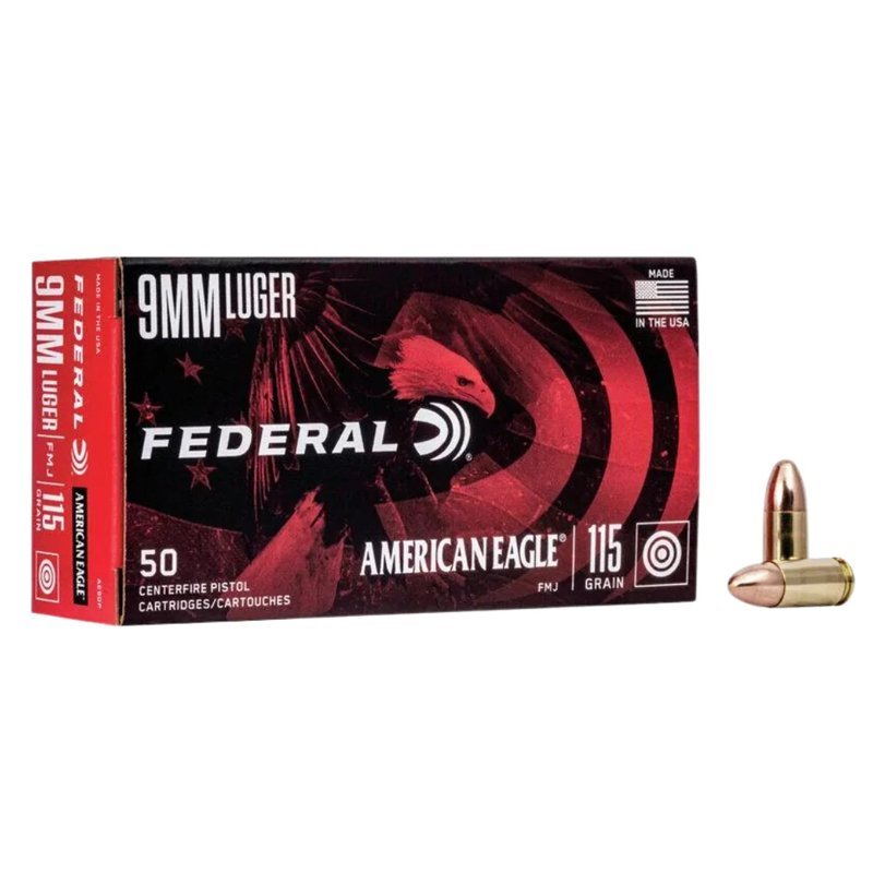 Federal American Eagle 9mm Luger Bullets are designed for reliable performance and accuracy in 9mm firearms. Known for their consistent quality and clean-burning powder, these bullets are ideal for target shooting, training, and practice. Offering smooth feeding, dependable functionality, and effective ballistics, Federal American Eagle 9mm Luger Bullets are a trusted choice for shooters seeking reliable and affordable ammunition for range use and practice sessions.